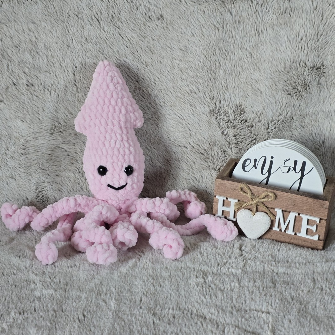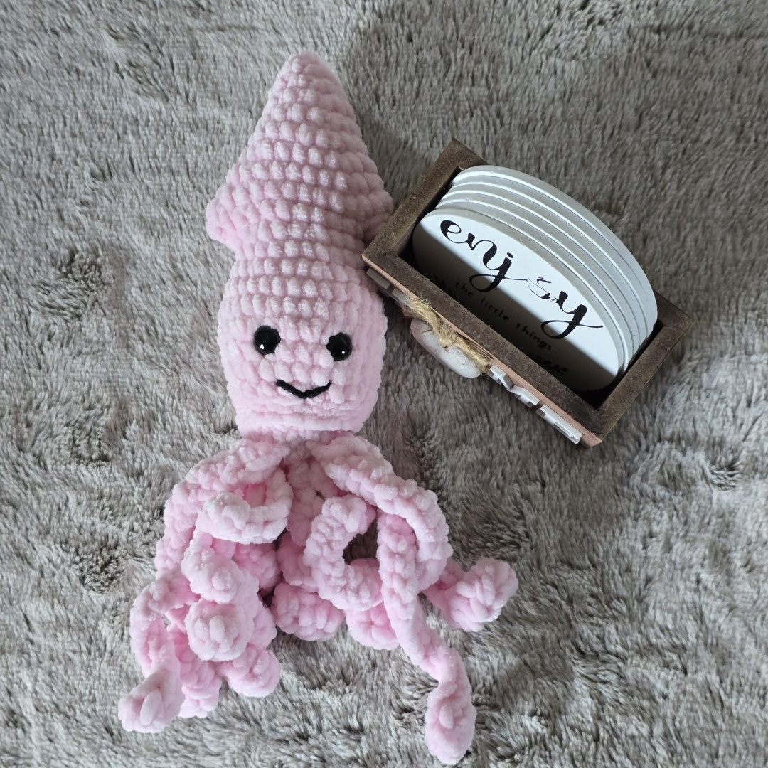 Kałamarnica Klara to coś więcej niż zwykła pluszowa maskotka. To małe dzieło sztuki, stworzone z miłością i pasją. Wykonana z miękkiej, przyjemnej w dotyku włóczki, wypełniona antyalergicznym wkładem, idealnie nadaje się do przytulania oraz jako maskotka kolecjonerska. Jej przyjazny uśmiech i delikatne macki sprawiają, że od pierwszej chwili budzi sympatię zarówno dzieci, jak i dorosłych 🌸