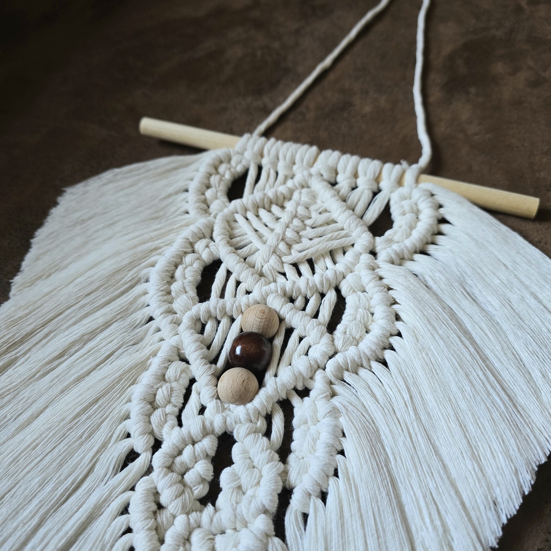 Przedmiotem sprzedaży jest wyłącznie makrama. Pozostałe elementy widoczne na zdjęciach pełnią funkcję poglądową i nie są objęte ofertą.