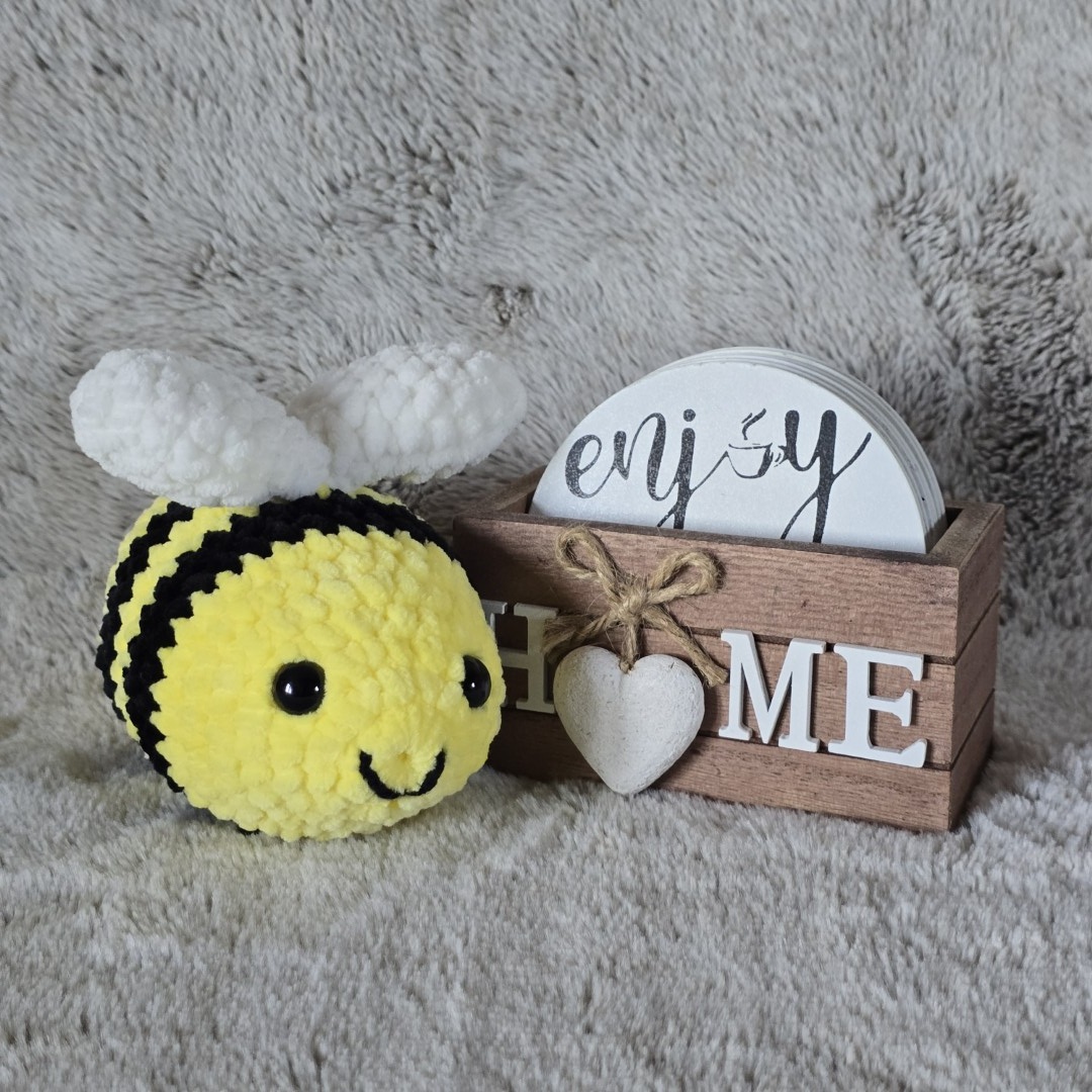 Każda Pszczółka Berta powstaje metodą szydełkowania, dzięki czemu jest jedyna w swoim rodzaju. Miękka, przytulna i bezpieczna – idealna do tulenia, zabawy i dekoracji dziecięcego pokoju.
