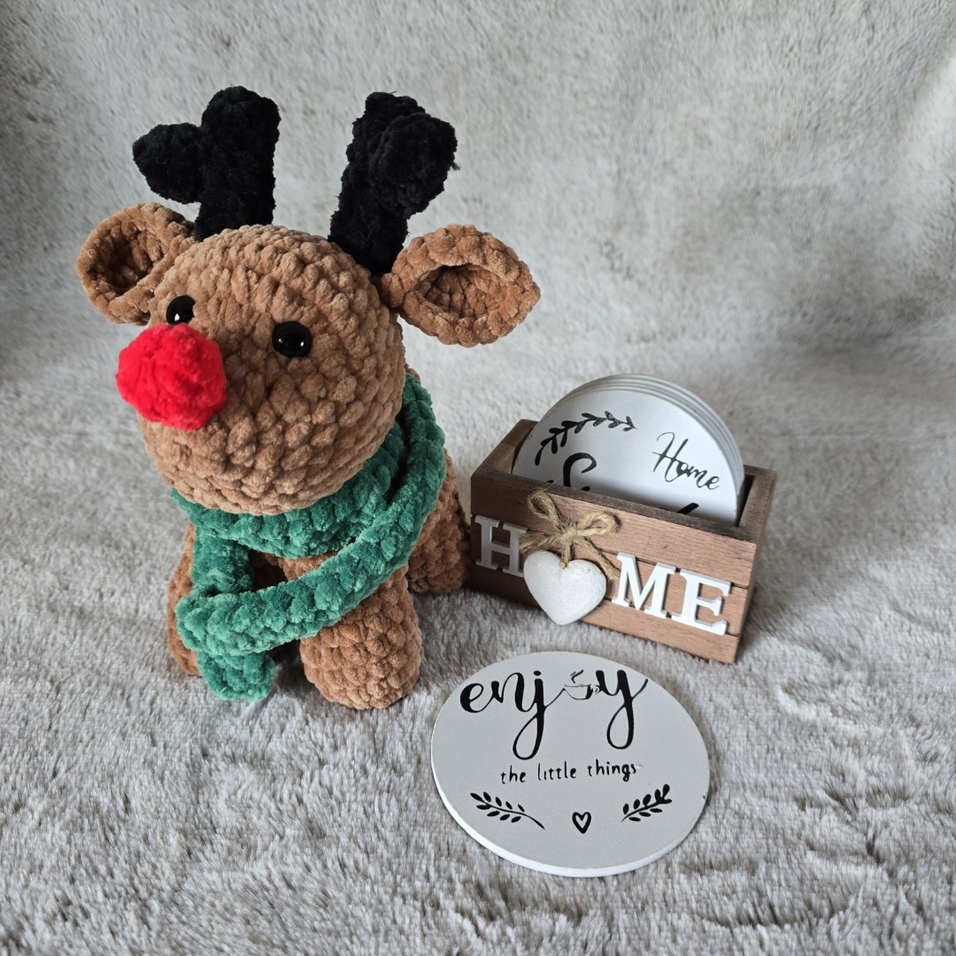 Poznaj Renifera Borysa, ręcznie wykonanego na szydełku, który wnosi do domu mnóstwo świątecznej magii i radości. Jego obecność sprawia, że atmosfera w pokoju wypełnia się ciepłem, blaskiem światełek i dziecięcym śmiechem 💛