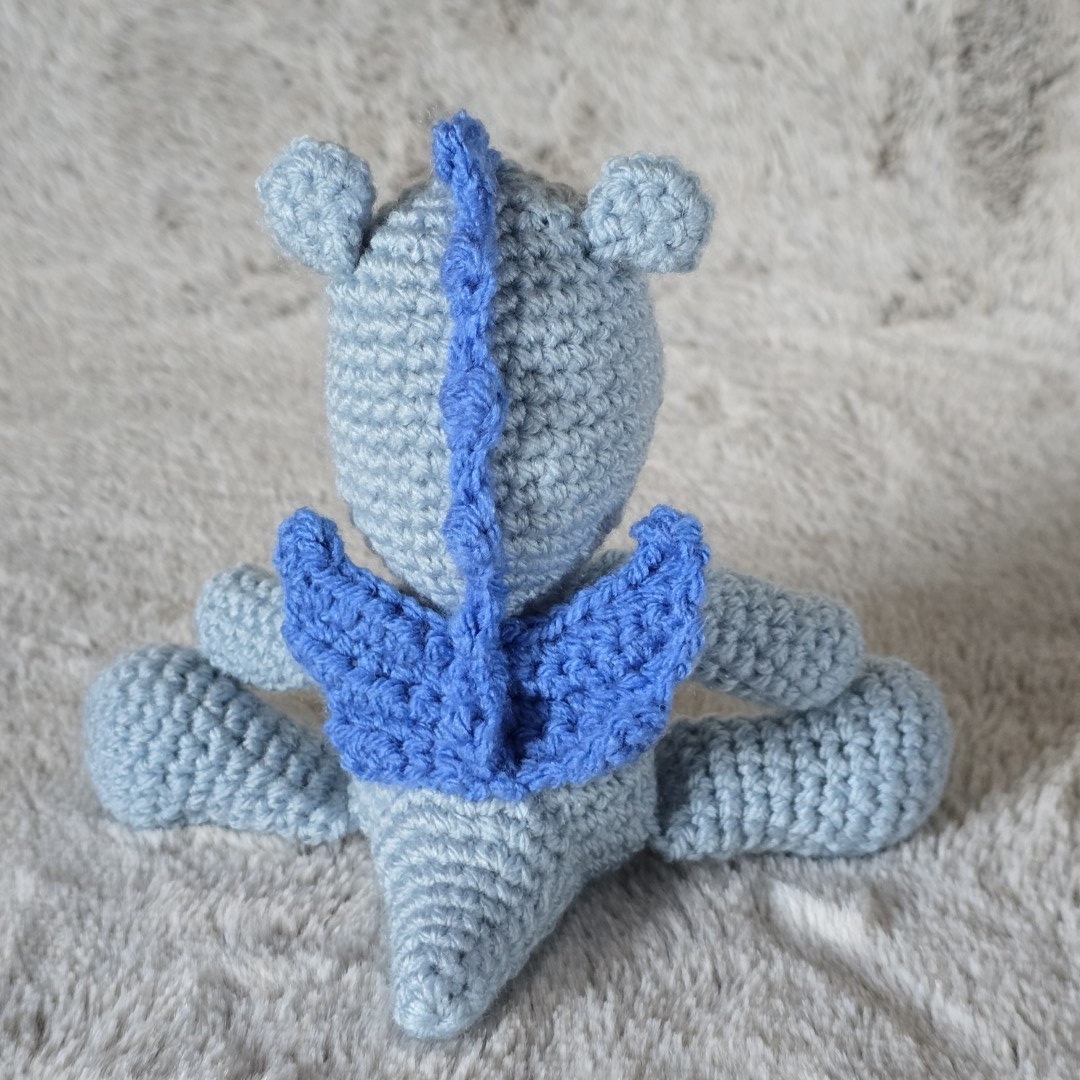 Ten niezwykły bohater zachwyca fantazyjnymi skrzydłami, charakterystycznym smoczym grzbietem oraz arcy przyjaznym pyszczkiem, dzięki czemu jest nie tylko maskotką, ale prawdziwym rękodzielniczym mini dziełem 🧵