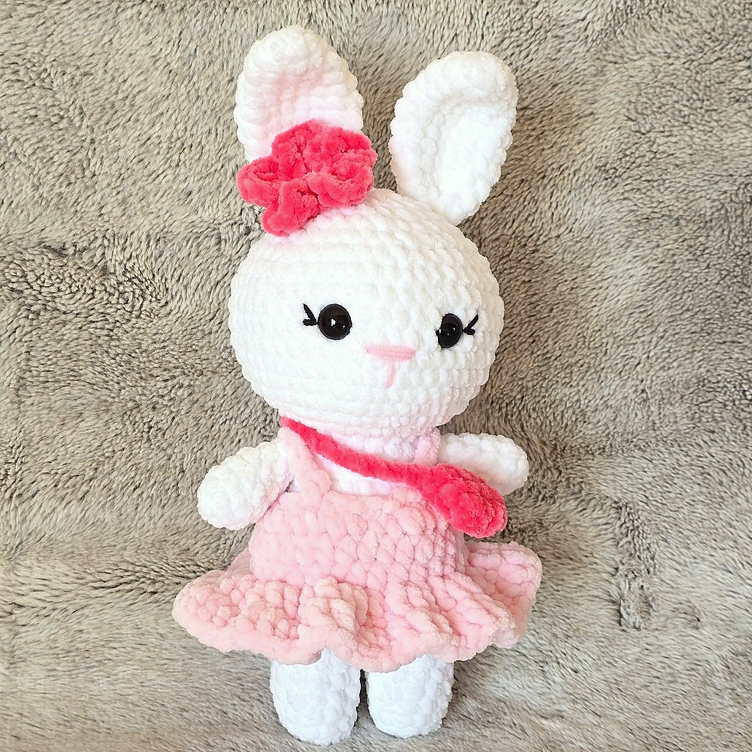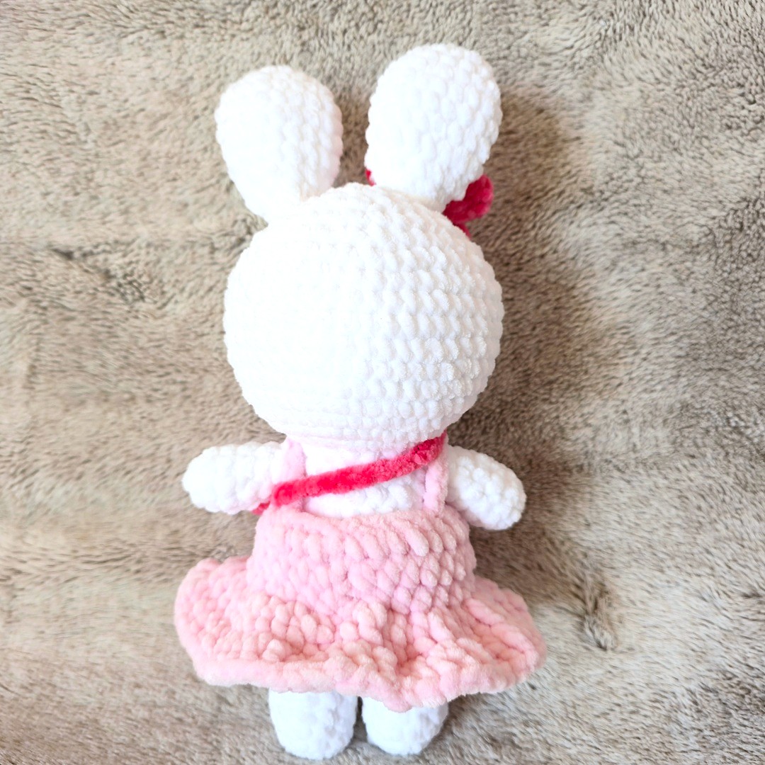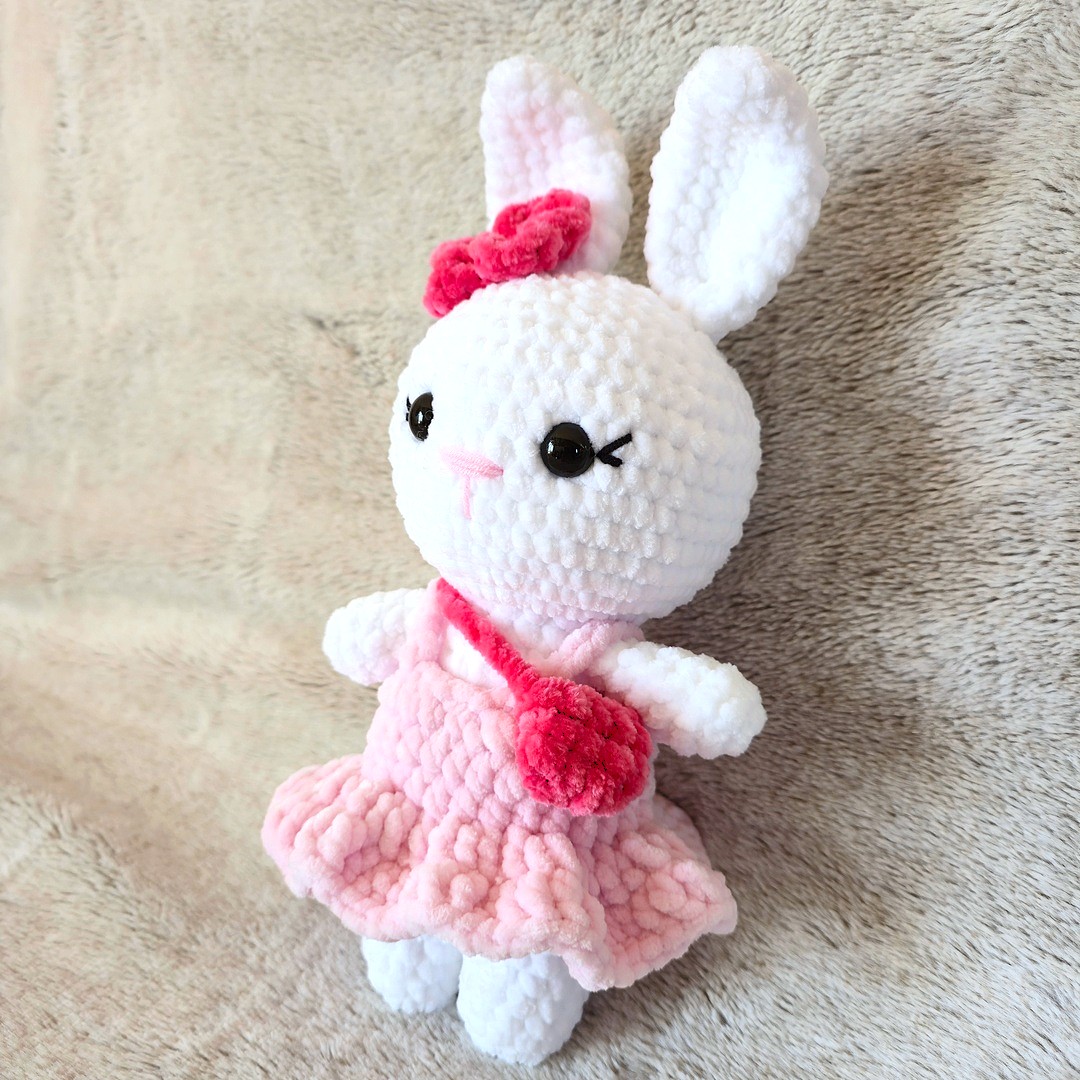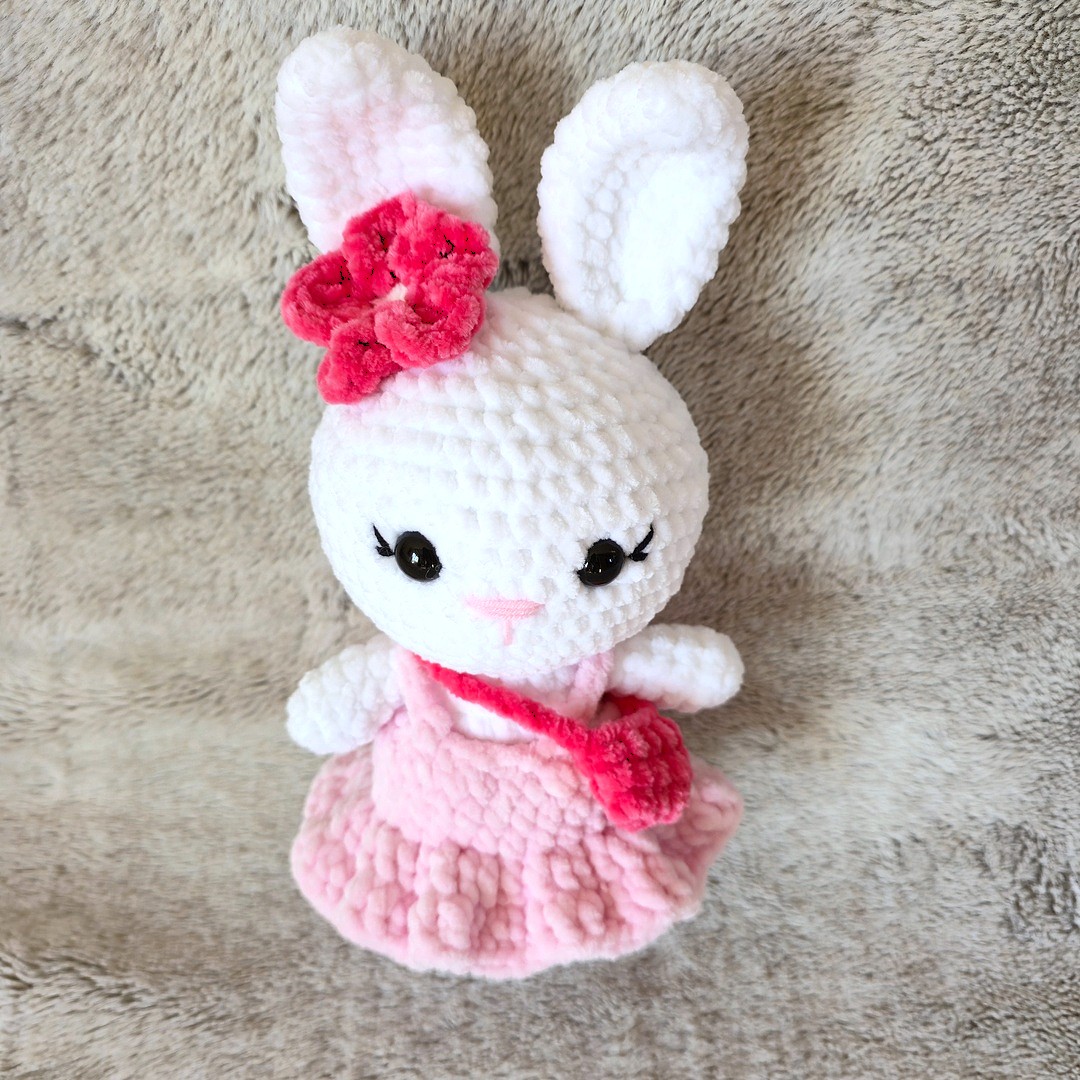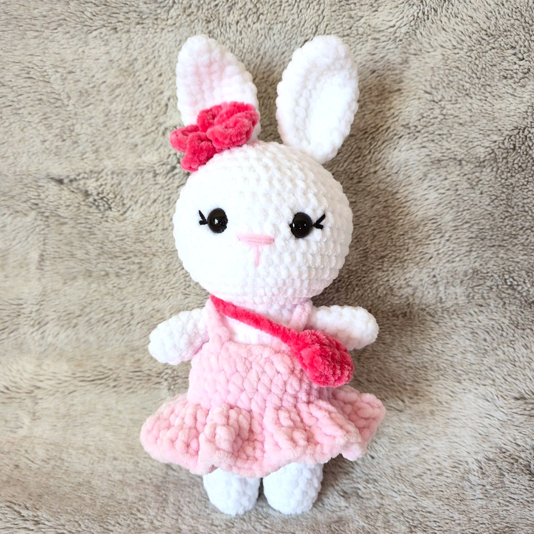 Poznaj Rosalinkę – ręcznie szydełkowaną maskotkę zajączka, która zachwyca od pierwszego spojrzenia! Wykonana z niezwykle miękkiej, puchatej włóczki, urzeka delikatnością oraz precyzją każdego detalu. Jej stylowa różowa sukienka👗i urocza mini torebka👜nadają jej wyjątkowego, eleganckiego charakteru.