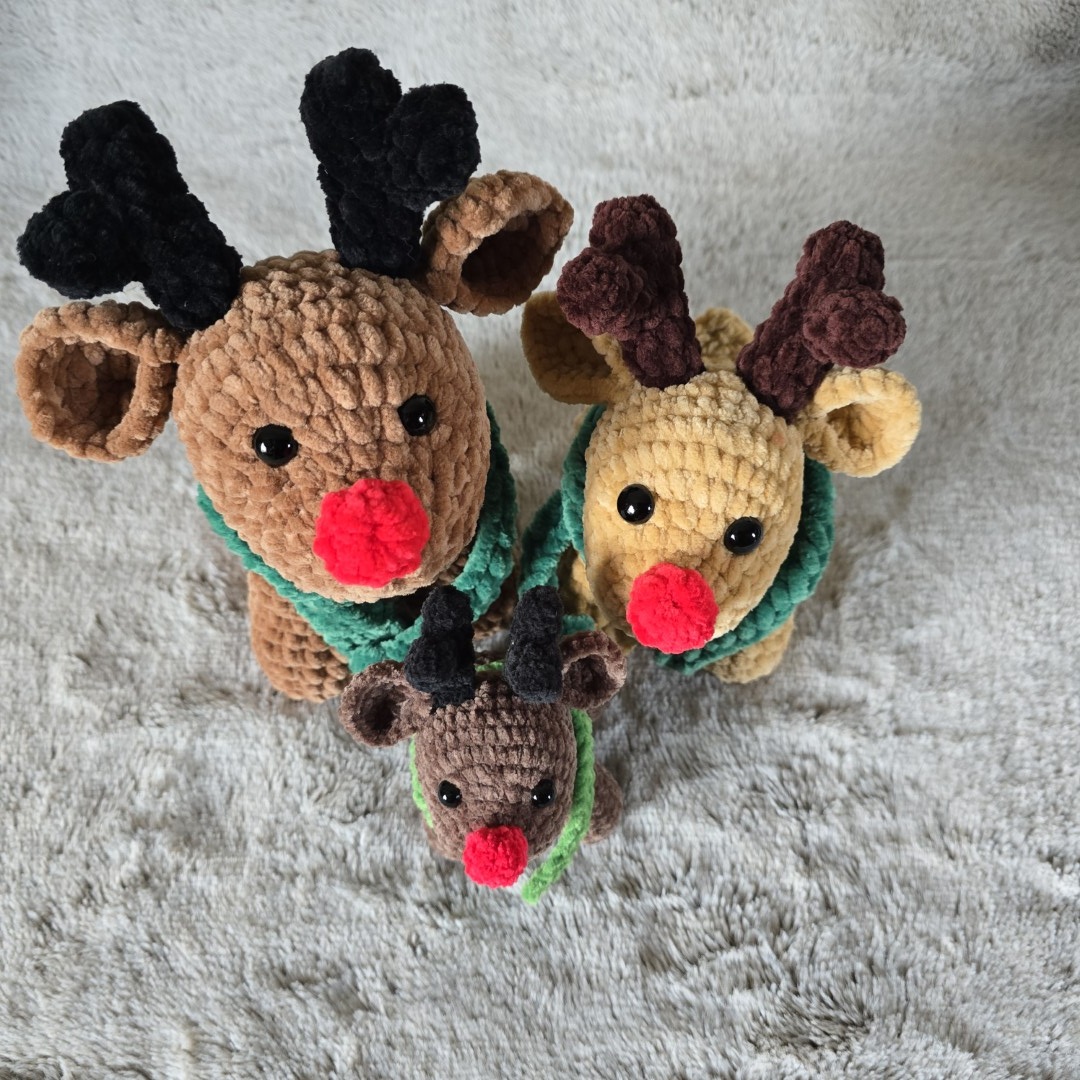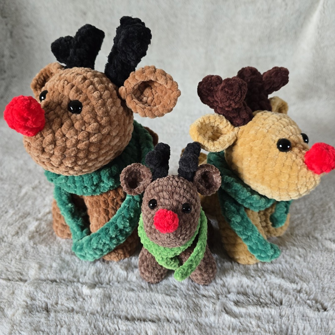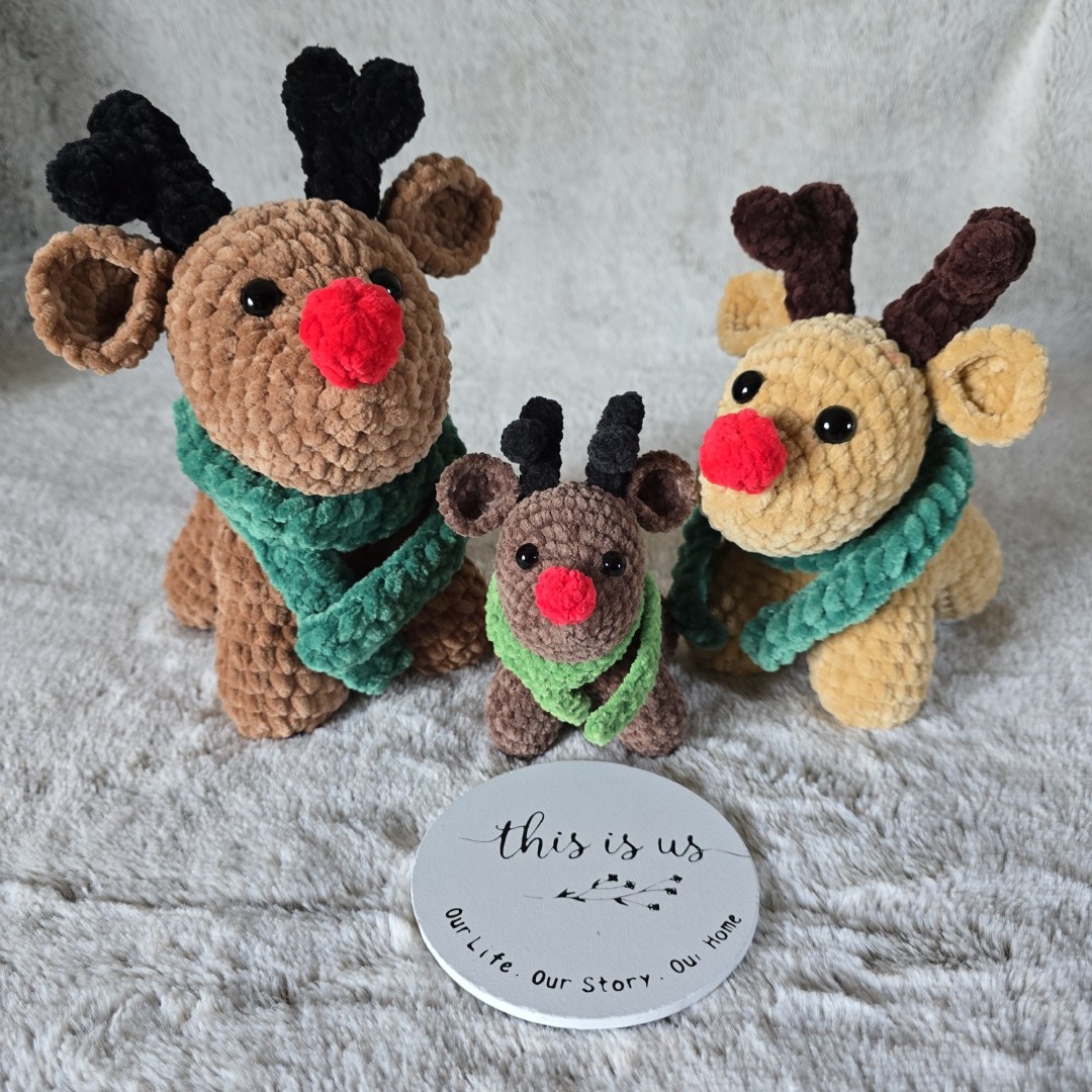 Reniferowa Rodzina – zestaw ręcznie szydełkowanych maskotek pełnych ciepła